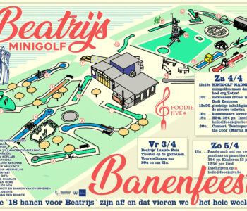 Minigolf Beatrijs is een plek in het groen op Linkeroever voor iedereen. Je hebt er een prachtig zicht op het hart van Antwerpen. Je kan er minigolfen tussen de kunstwerken, iets eten, drinken en vooral heel veel plezier maken.
