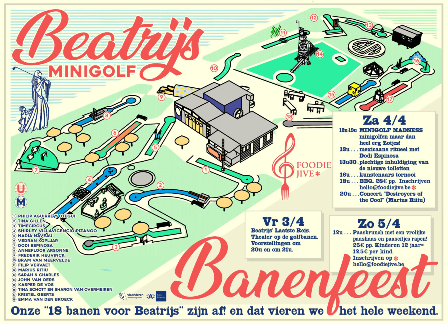 Een deel van ons terrein kan afgehuurd worden voor feesten of teambuildings. De winterverhuur begint na de kerstvakantie. Het eten voor groepen wordt verzorgd door Foodiejive. Het menu vind je hier. Voor meer info: info@minigolfbeatrijs.be Wil je je teambuilding inhoudelijk verdiepen?Dan kan je kiezen voor een inspirerende opleiding bij GLOED coaching, gevolgd door een smakelijke… Lees verder Verhuur
